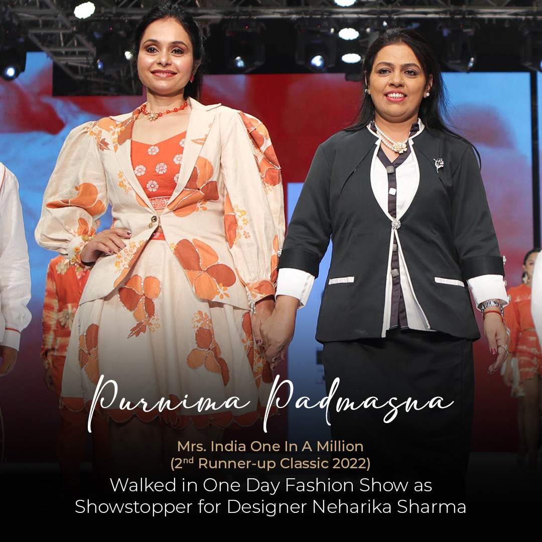 Mrs India One in a Million is a Beauty Pageant which is completely dedicated to all married women of the country with its three of the categories (Platinum, Gold and Classic). Our purpose is not just to find a winner but to show women that they all are winners, we aim to provide a platform where our women can come forward and turn their dreams into reality.